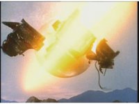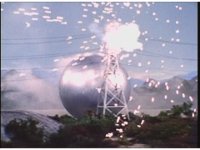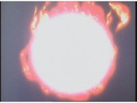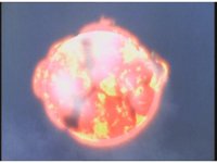 Close on the flaming Staroid ball, dropping straight down from the sky. |