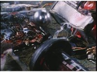 Another downward angle on the ground of the battlefield, many of the same huge chunks of mechanical debris rain down together again. |