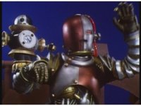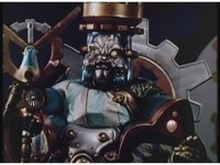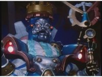 Red struggles in his efforts to jam the monster's clockworks, when Blue steps in and helps out. |
