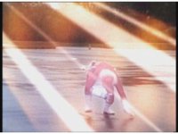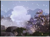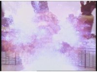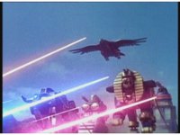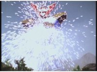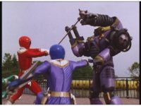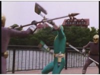Cuts follow-up sequence of Megazord tossing sword into monster's mouth. |