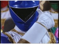 Rocky calls for Zeo Ranger 3, Blue, as said color energy flashes about, a green grid overlaying on his body. The rising energy covers him completely, becoming the Blue Zeo Ranger, visor and costume circuits shimmering with power. |