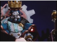 Slow zoom out, close from King Mondo, talking to our lower left, Prince Sprocket barely visible. |
