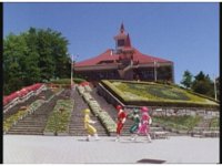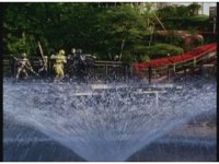 Zoom in on People Pitcher, as he gets up, then sprays mist to our slight right. |
