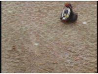 Reverse angle, as Red approaches the finish line, just as People Pitcher steps onto the track. |
