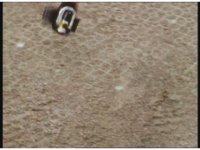Ground shot of Zeonizer bouncing against the dirty pavement. |