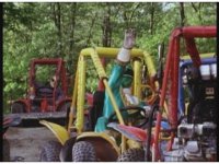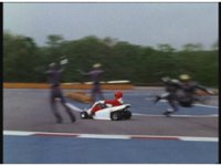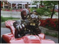 Zoom out as Green lands on go-cart, grabs Zeonizer, then bops Cog out of the cockpit, before taking it over. |