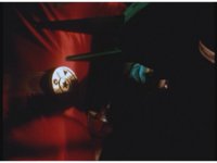 Close side angle on People Pitcher's head, his mouth bursting open with smoke, before action figures of Red & Blue go flying out. |