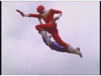 Zoom in on Red as he and his teammates do a group jump kick into the screen. |