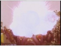 Close on People Pitcher as he's jolted by a sudden superimposed bursting of smoke. |