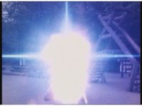 Zoom out, as Orbus hovers above People Pitcher, and releases a bluish energy beam from his chest plate, causing the monster to rise up, back onto its feet in a fading glow. |