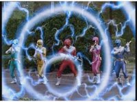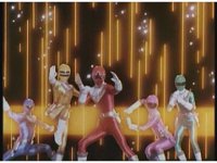 Background flashes and turns into a golden rain, the Rangers changing into battle stances |