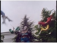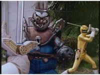 Zoom out and track left as Puppet Blaster and Zeo Megazord exchange sparkily blows. |