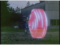Zoom in on Defender Wheel as it rolls swiftly to our left, energizing into red energy. |