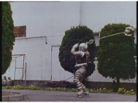 Leaving Klank/Orbus behind, Puppet Blaster rushes out from behind the bushes. |