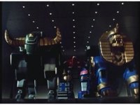 Track around to the left, as Zeozord Five passes over Zeozords One & Two, causing their Battle Helmets to slide forth off of their now-stationary forms. |