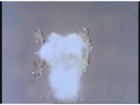 Superimposed explosion erupts over the pair of airborne saw-blades. |