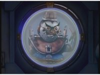 Footage of Puppet Blaster in Juice Bar plays on Machine Empire Skybase video screen. |