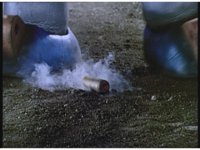The smoking, Bobbitted Puppet Blaster nose falls to the ground. |