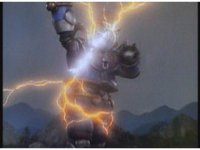 Puppet Blaster then mace-hand bashes Zeo Megazord, sparkily, in the upper chest. |