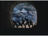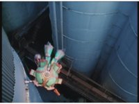Downward angle on Hydro-Contaminator, hurrying into another cemented area, then goes to our left. |