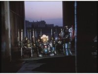 Queen Machina & King Mondo fidget about, beside each other, the latter talking. Slow zoom in on Machina, as she talks, motions fan about while doing so. |