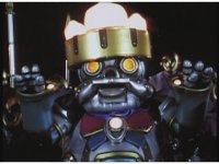 Close on Prince Sprocket, motioning arms, distraughtly, Cogs behind him. |