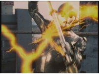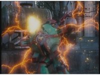Golden sphere of energy slams into Hydro-Contaminator, who crackles with yellow electricity, then disintegrates into a swath of fading particles. |