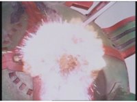 Extreme close-up on Hydro-Contaminator's golden eye orb thing, now smoking and corroded. |