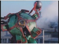 Close on Hydro-Contaminator, turning to our upper right when shadow of Red Ranger falls upon him. |