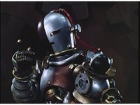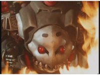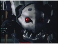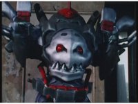 Close-up on Mechanizer, slowly marching forth, munching metal jaw up and down as he does. |