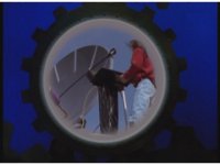 Close on King Mondo in front of clockwork wall, talking at us with a lot of wand-motioning and pointing. |