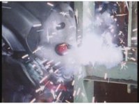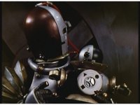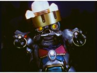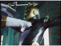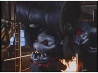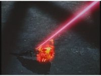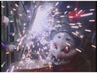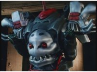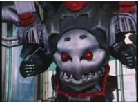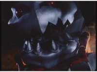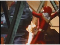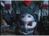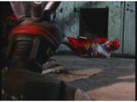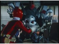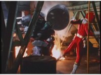 Mechanizer tosses Red aside, then lunges for him, only to sparkily bash his face against support beam. A superimposed explosion briefly appears, until the monster pulls his face away. |