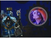 The three male Rangers grab Mechanizer, hold him in place for a moment, until he shrugs them off. |