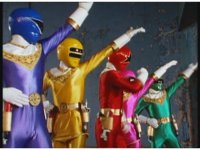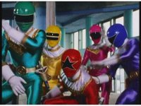 Facing our right, the five Rangers cease posing, then rush into battle. |