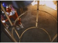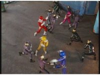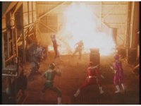 Zoom out as Mechanizer finds himself in a circle of Rangers, so he fires a few electricity beams off, causing explosions about. |