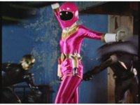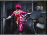 Kat calls for Zeo Ranger 1, Pink, as said color energy flashes about, a green grid overlaying on her body. Briefly, we cut to an outstretched arm morphing into a gloved Zeo Ranger hand. Cut back to Kat, as the rising energy covers her completely, becoming the Pink Zeo Ranger, visor and costume circuits shimmering with power. |
