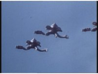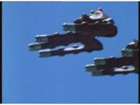 Close-up, side angle, on pair of Quadrafighters flying to our left. |