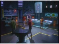 Footage of Billy's spaceship plays on Machine Empire Skybase video screen. |