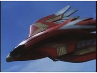 Downward close shot on Zeozord Five, flying to our left as it shifts wings in its sides. |