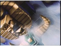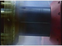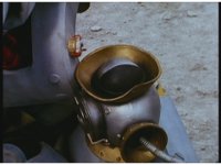 Close-up on one of Red Battlezord's fist pistons pumping in and out, releasing steam. |