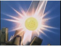Close-up on Zeonizer, the golden disc thing already popped up, releasing a shimmering green light. |
