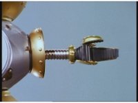 Zoom out, as Klank grabs Orbus' extended handle-hand, then begins to swing Orbus around in a wide circle. |
