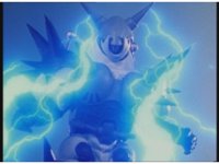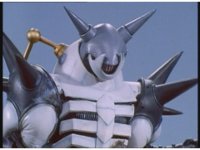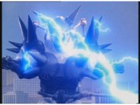 Red Battlezord is struck by electricity, and spark bursts brightly. After the smoke clears, it steps through, damaged superficially, but utterly and totally unfazed. |