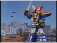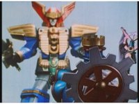 Close on Zeozords Three & Four, finishing their connection in the middle of the sky, releasing steam upon linking up. |