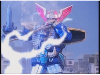 Main Drain charges at Zeo Megazord, but gets sparkily slashed twice by its saber. |
