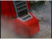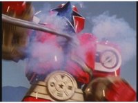 Red Battlezord cockpit shakes as sparks and smoke erupt, poor Red Ranger having a wilder ride than Mr Billy. |