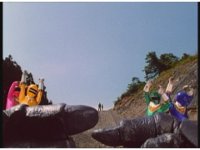 Zoom in on quarry, as the four Rangers regroup, clutching chests and watching upward over us. |