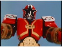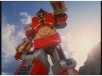 Zoom in on Red Battlezord, raises together, then lowering, arms victoriously. |