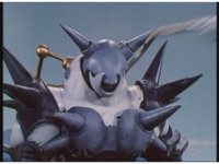 Close-up on Orbus' upper half, his head retracting into his body. |
