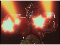 Close on Red Battlezord, firing a barrage of golden bolts from both of its fist gauntlets. |